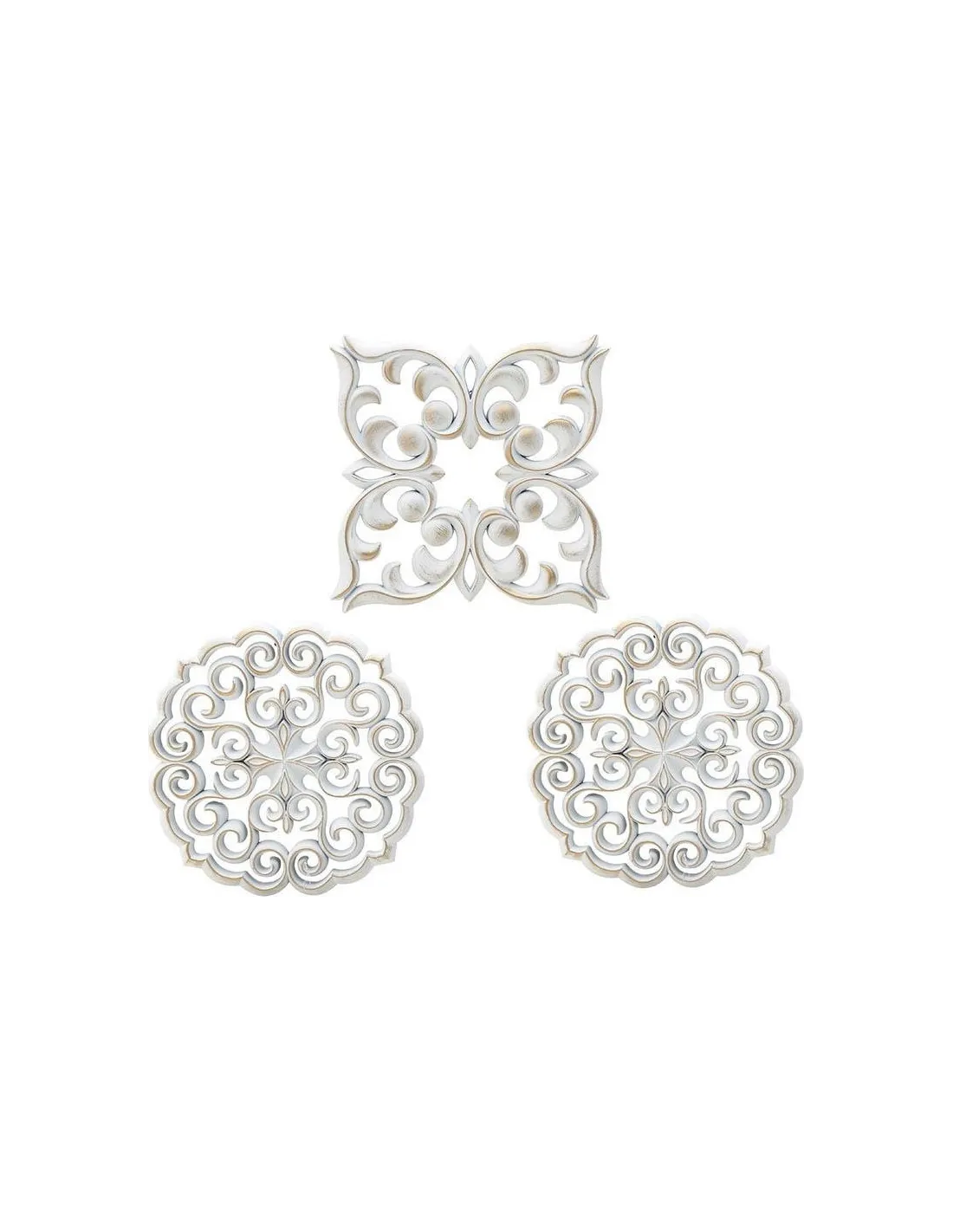 Set trei decoruri pentru perete, din materila plastic de culoare alb auriu. Un decor care se asorteaza cu orice incapere ai alege, potrivit atat pentru locuinta personala cat si pentru birou/afacerea ta. Atunci cand ne inconjuram de elemente care ne plac, starea de spirit se schimba.